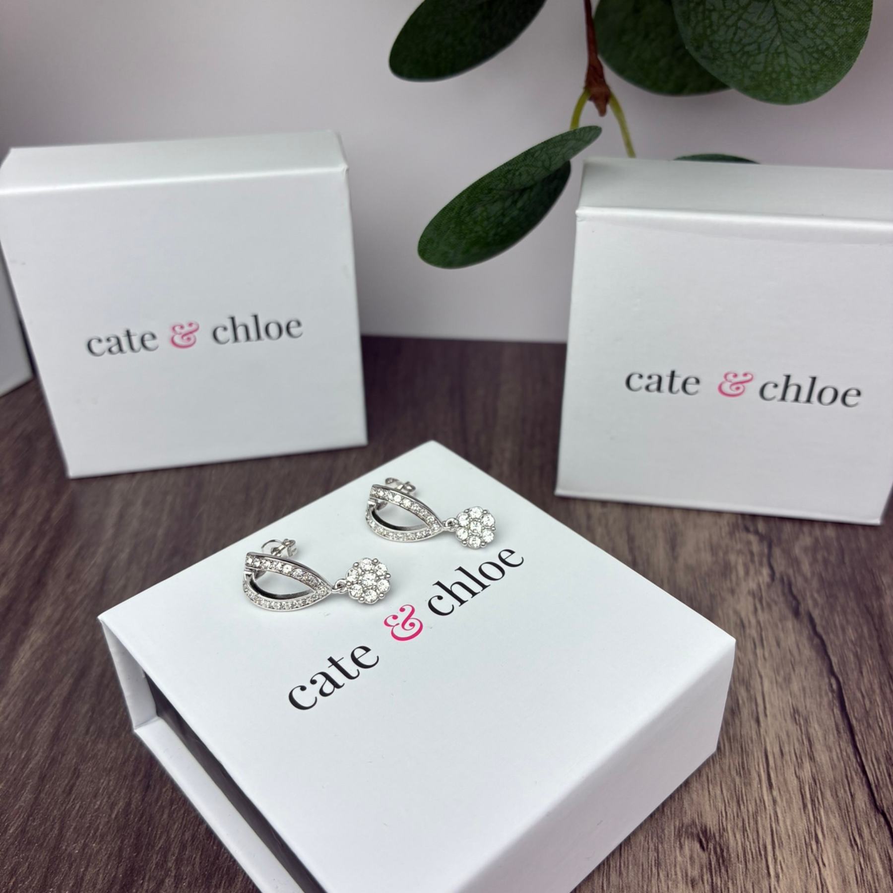 Megan 18k White Gold Plated Diamond Dangle Stud Earrings with Swarovski Crystals