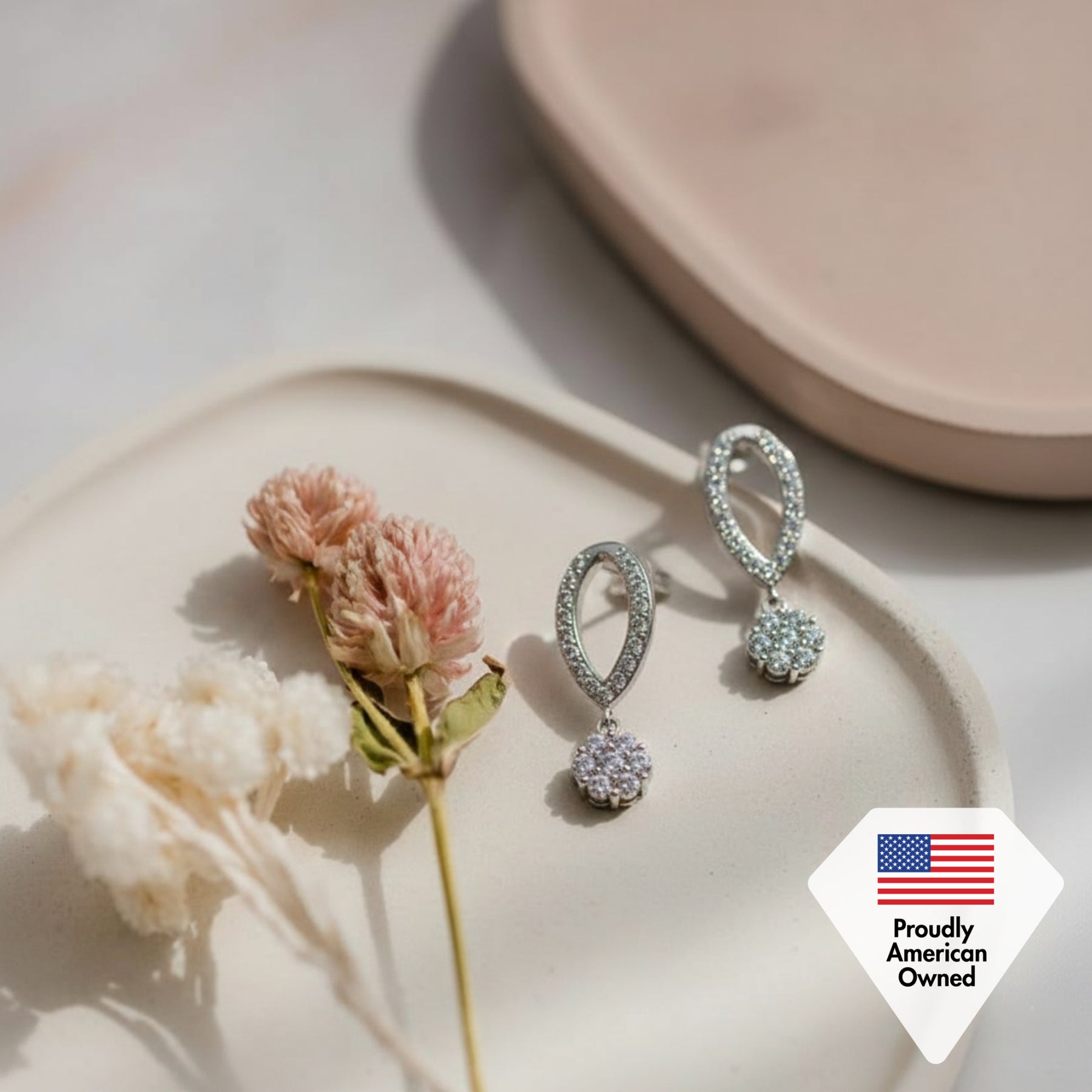 Megan 18k White Gold Plated Diamond Dangle Stud Earrings with Swarovski Crystals