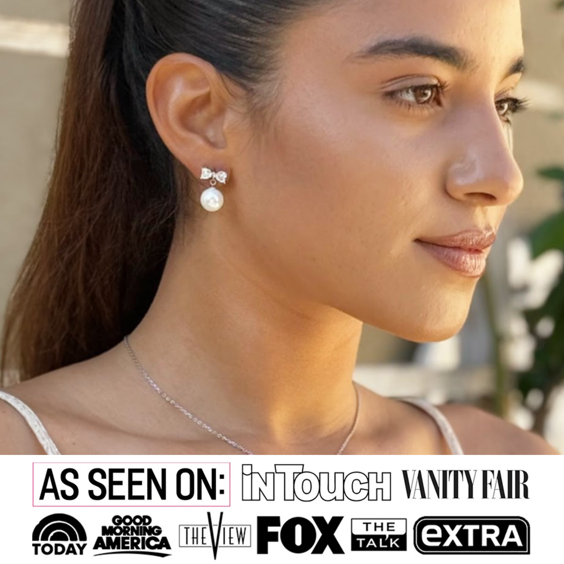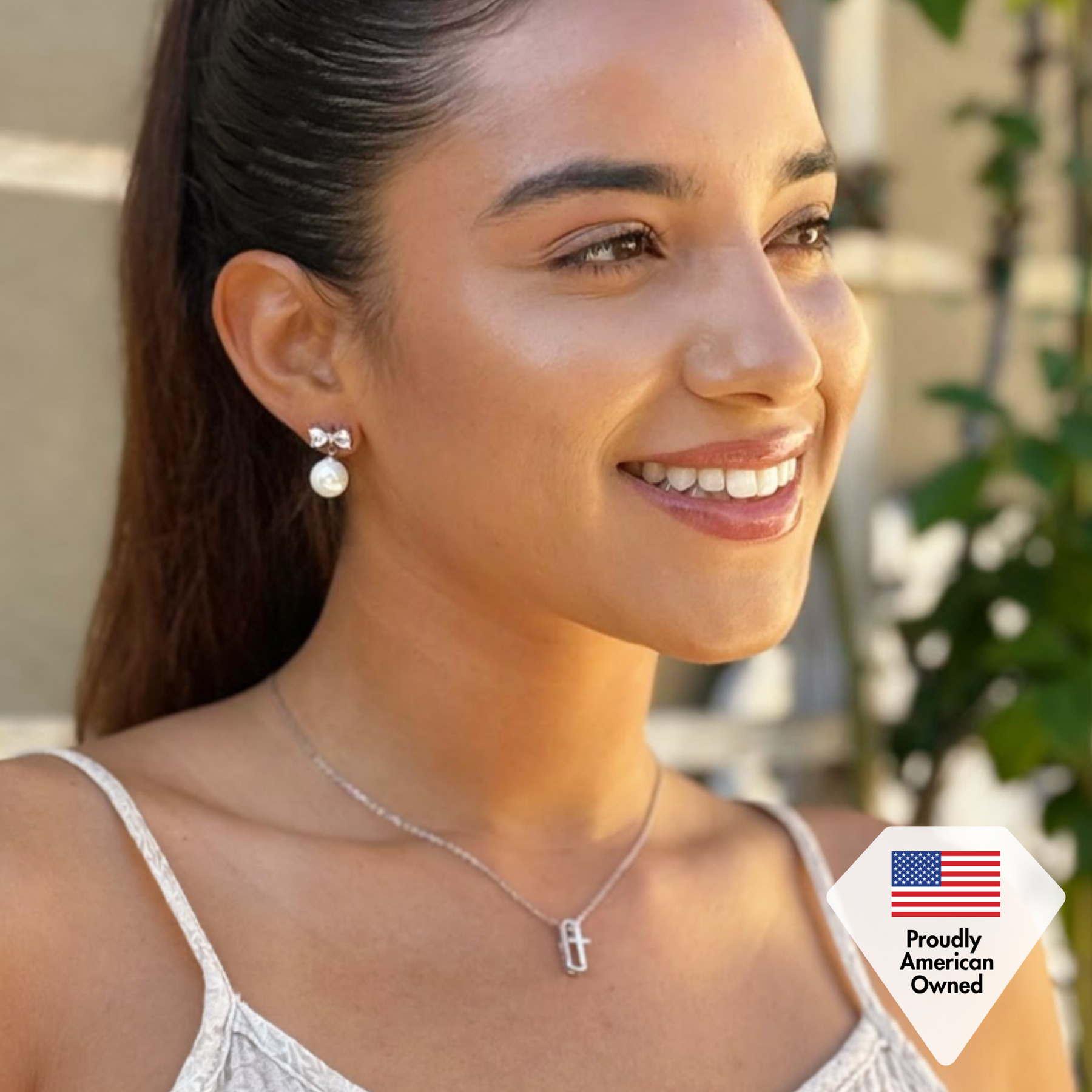 Oakley 18k White Gold Plated Silver Drop Pearl Earrings with Swarovski Crystals