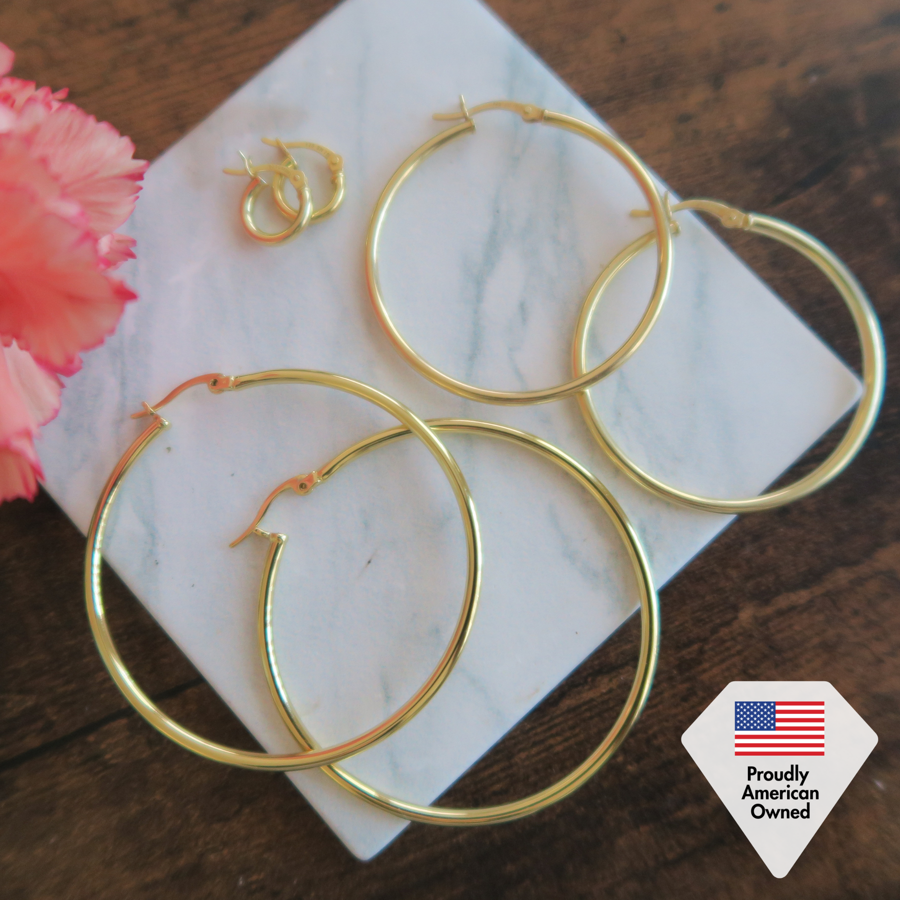 Elevate your earring collection with the Monica 18k White Gold Plated Hoop Earrings pack. This versatile set includes three pairs of hoops in varying sizes — 10mm, 40mm, and 50mm — so you can effortlessly switch up your look to suit any occasion. Crafted from hypoallergenic brass and plated in luxurious 18k white gold, these hoops offer a timeless shine and durable wear. Whether you're dressing up for a night out or adding a classic touch to everyday style, the Monica set provides the perfect balance of elegance and versatility. Presented in a chic Cate & Chloe gift box, this set makes a thoughtful gift or a stylish addition to your own jewelry collection.