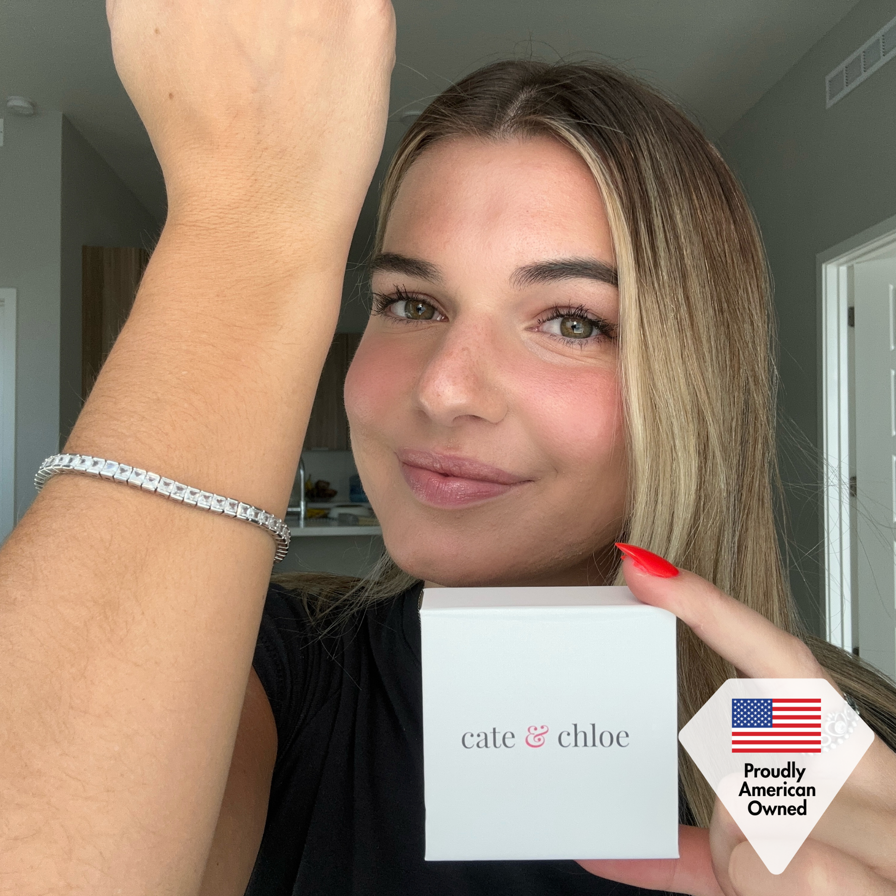 The secure box with a tongue clasp ensures a perfect fit for its 7.5" length. Crafted with care from brass and plated in lustrous white gold, it's hypoallergenic, lead & nickel-free. Gift a touch of sophistication with options in white, yellow, and rose gold. Delivered in a chic C&C branded gift box, it's the perfect gift for her, encapsulating femininity and grace.