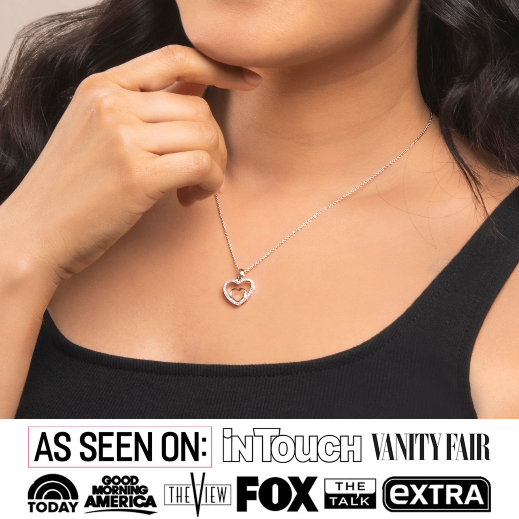 Our rhodium plated pendant necklace is the perfect fashion accessory for any woman! This heart halo pendant necklace will flatter anyone, with all the beautiful Simulated Diamond Crystals  stones on this pendant, it will be hard for people to ignore.