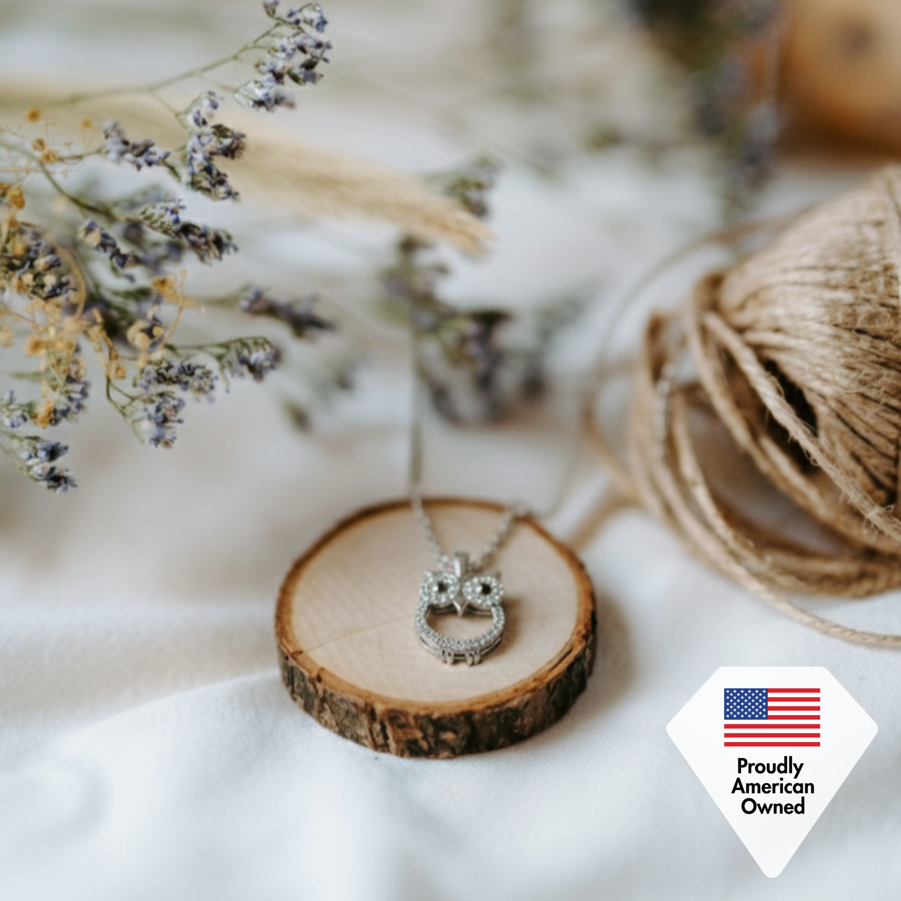 Embrace effortless sophistication with the Ari 18k White Gold Plated Owl Pendant Necklace, designed to bring a charming touch of elegance to any look. Crafted from hypoallergenic brass and finished in radiant 18k white gold plating, this whimsical owl pendant is adorned with brilliant simulated diamond crystals that add a captivating sparkle. The adjustable chain ensures a comfortable and versatile fit, making it perfect for both everyday wear and special occasions. Presented in a signature Cate & Chloe gift box, the Ari necklace makes a thoughtful, stylish gift—or a delightful addition to your own jewelry collection.