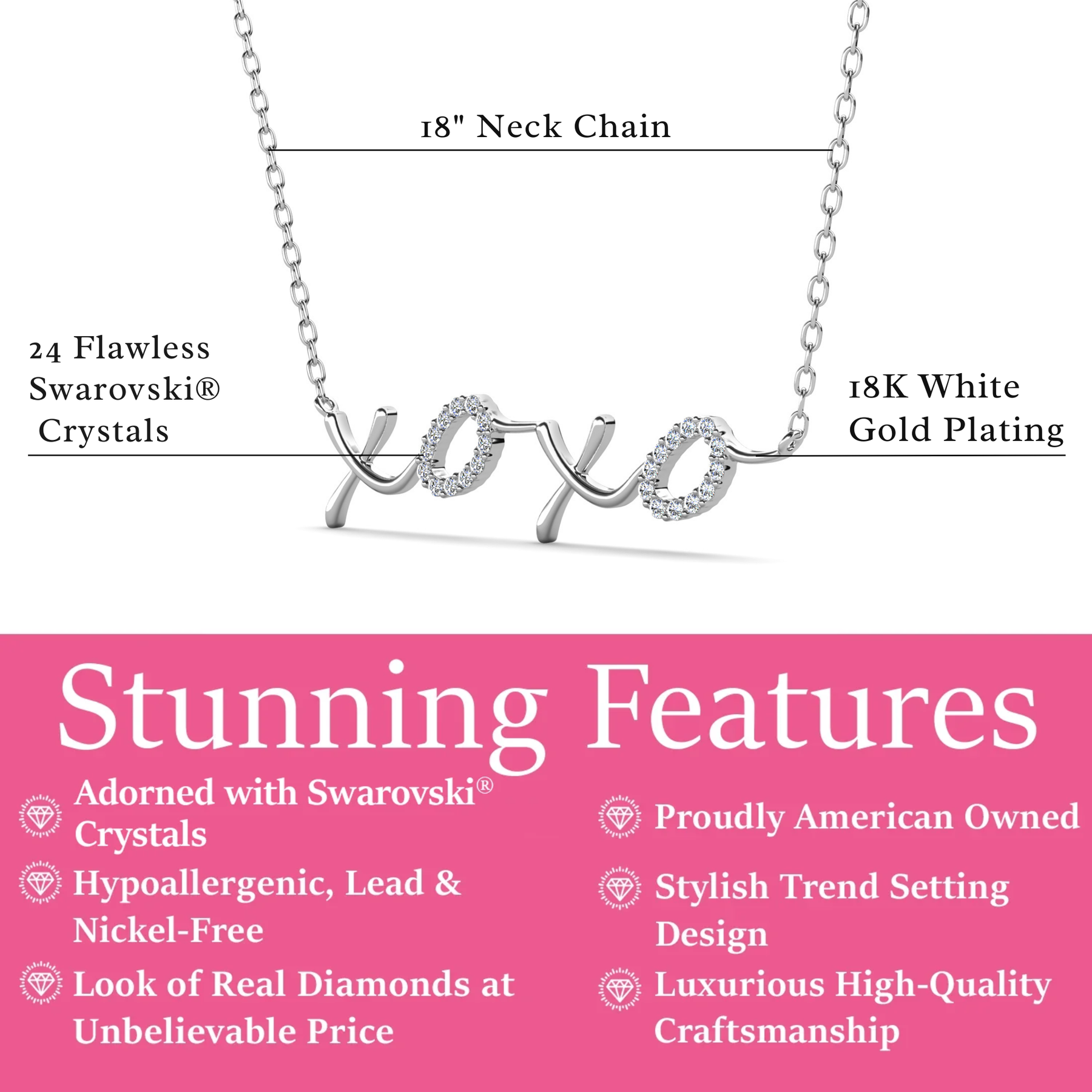 Jocelyn 18k White Gold Plated XOXO Pendant Necklace with Swarovski Crystals