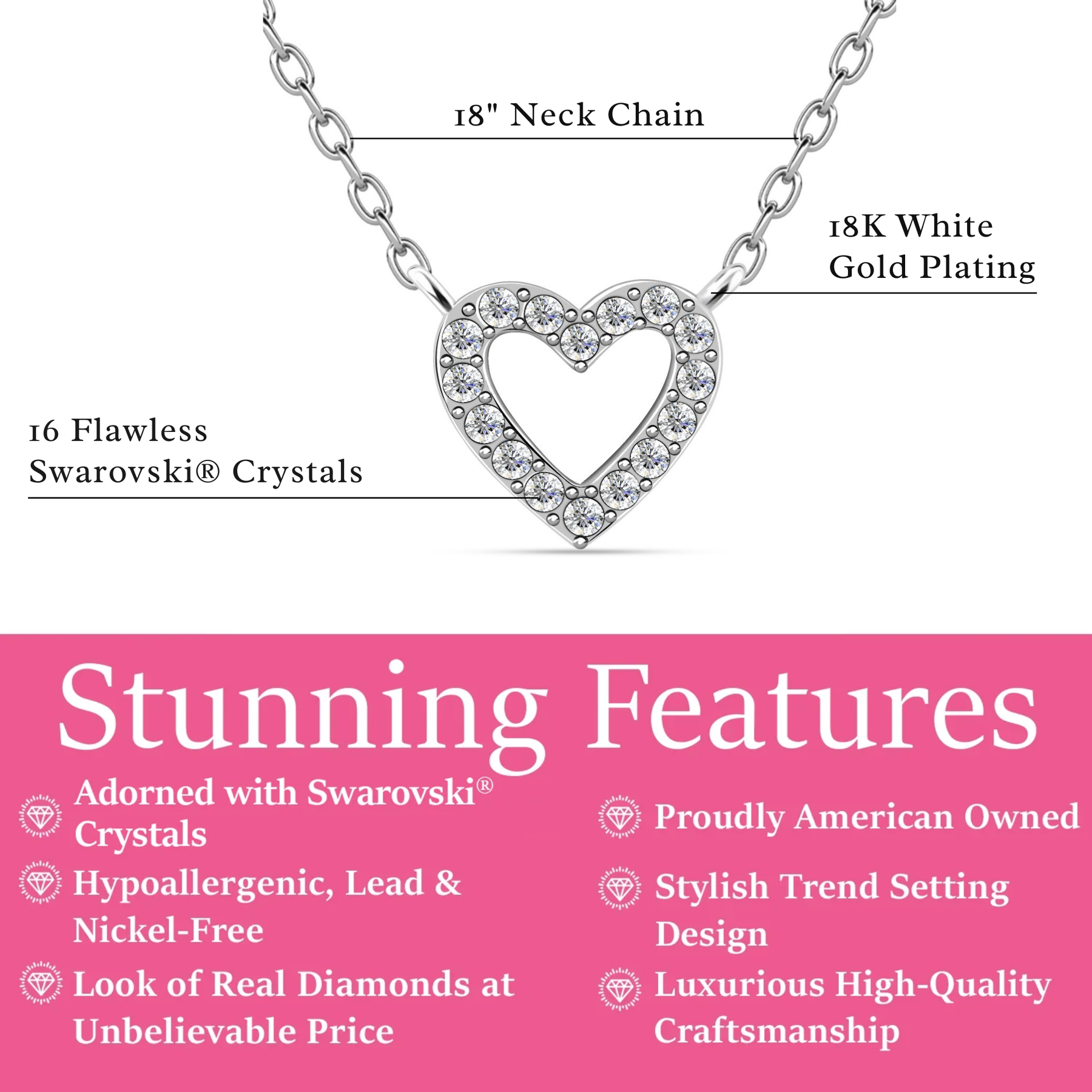 Piper 18k White Gold Plated Heart Pendant Necklace with Swarovski Crystals