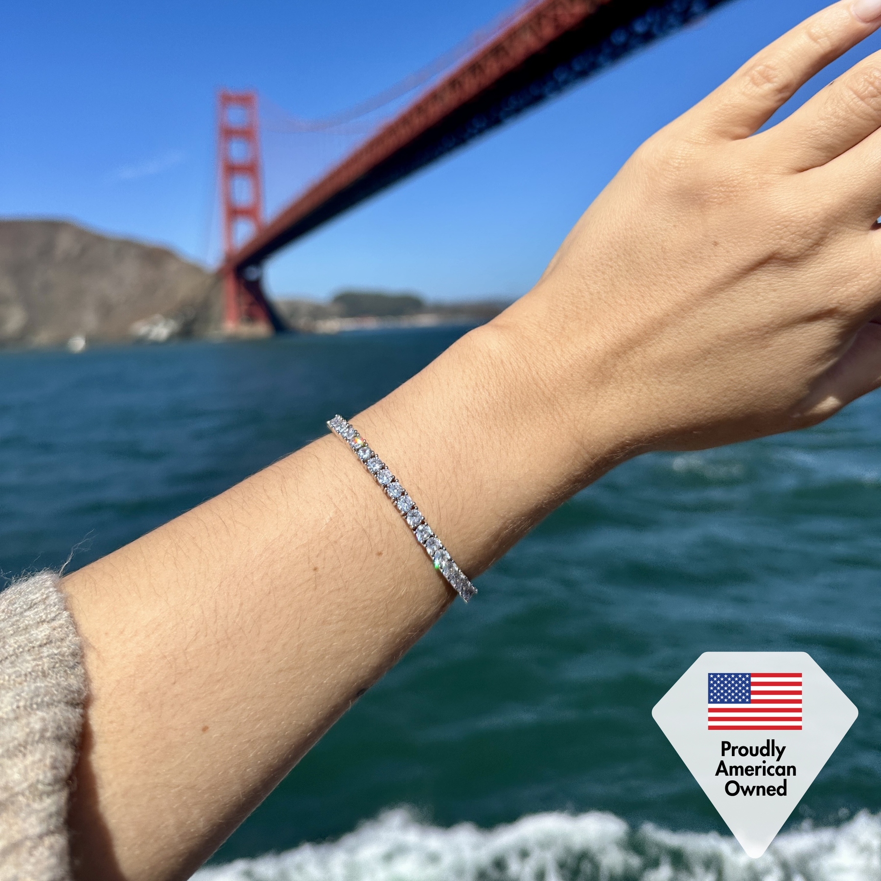 Indulge in timeless elegance with our Olivia 18k White Gold Plated Tennis Bracelet. Adorned with 43 round-cut simulated diamond crystals, each 4mm in size, this exquisite piece exudes sophistication. The 7.5" bracelet, featuring a secure tongue clasp, is plated in lustrous 18k white gold.