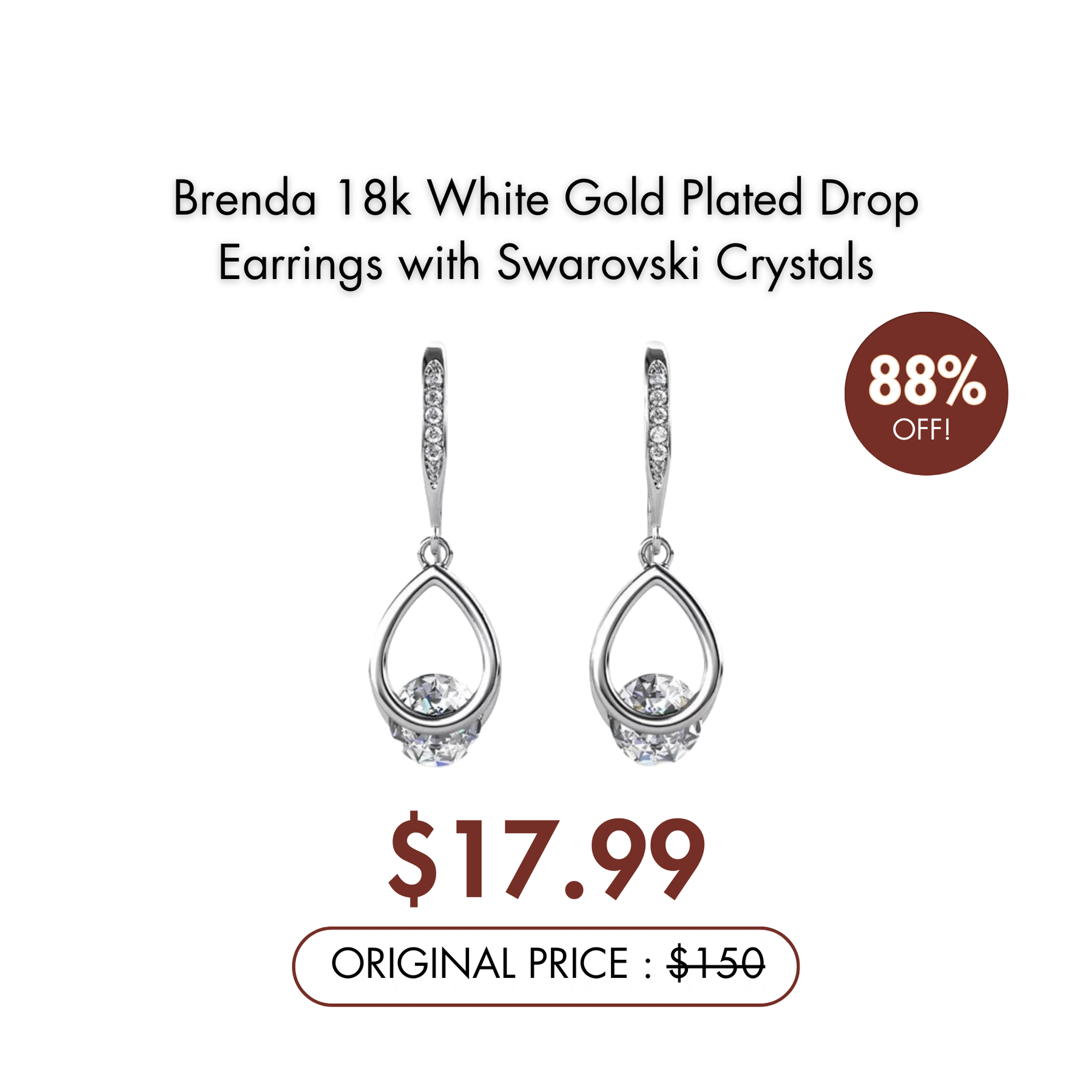 Introducing our Brenda 18k White Gold Plated Drop Earrings, a timeless blend of elegance and sophistication. These silver drop earrings boast a dazzling line of Swarovski® Crystals, capturing the glamour of classic earrings with a modern twist.