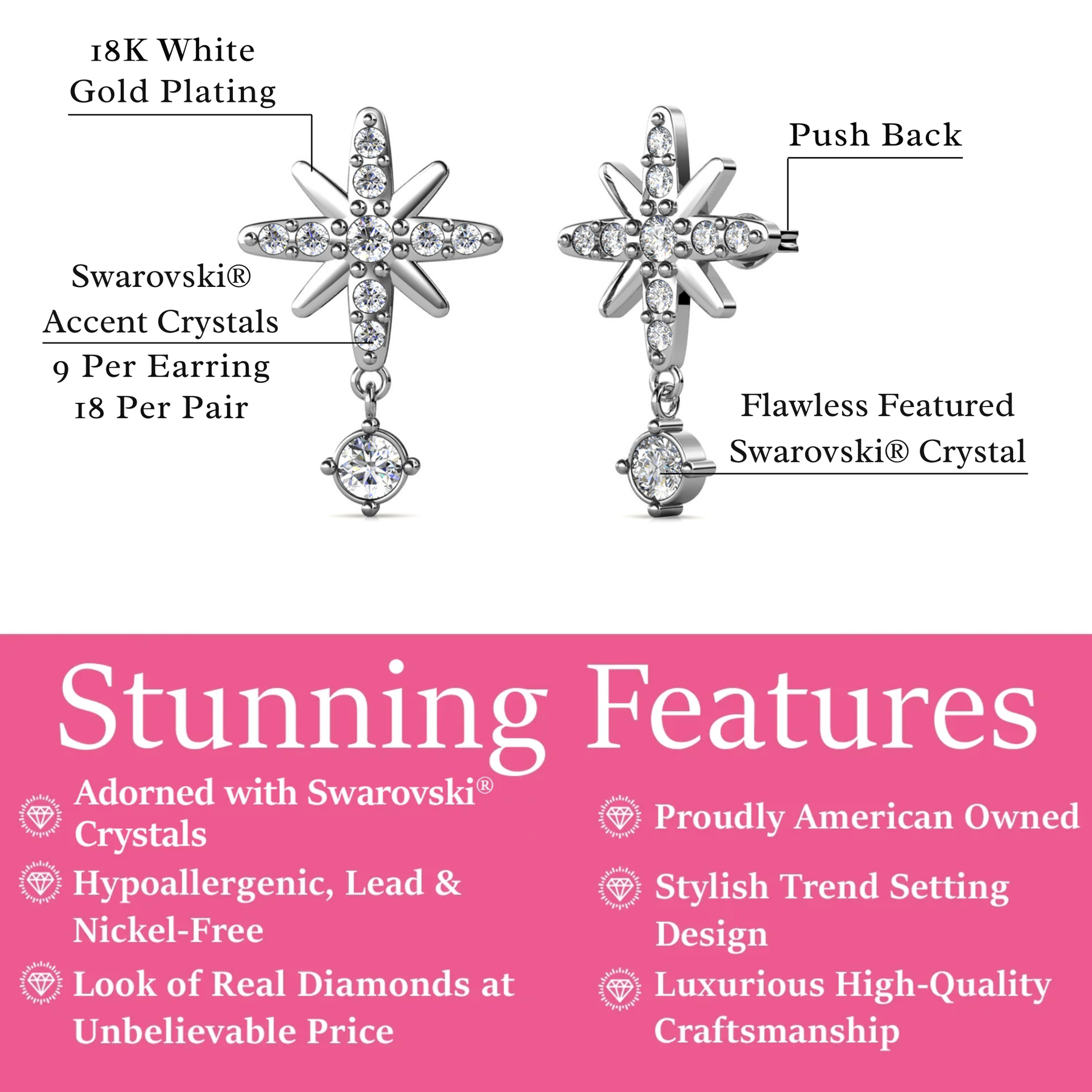 Harlow 18k White Gold Plated Silver Stud Drop Earrings with Swarovski Crystals