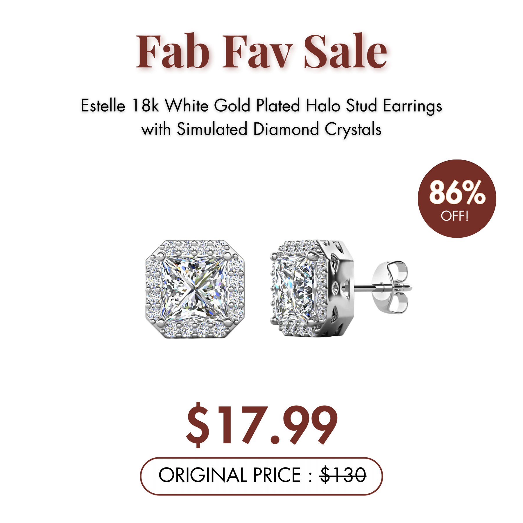 Estelle 18k White Gold Plated Halo Stud Earrings with Simulated Diamond Crystals — Fab Fav Sale