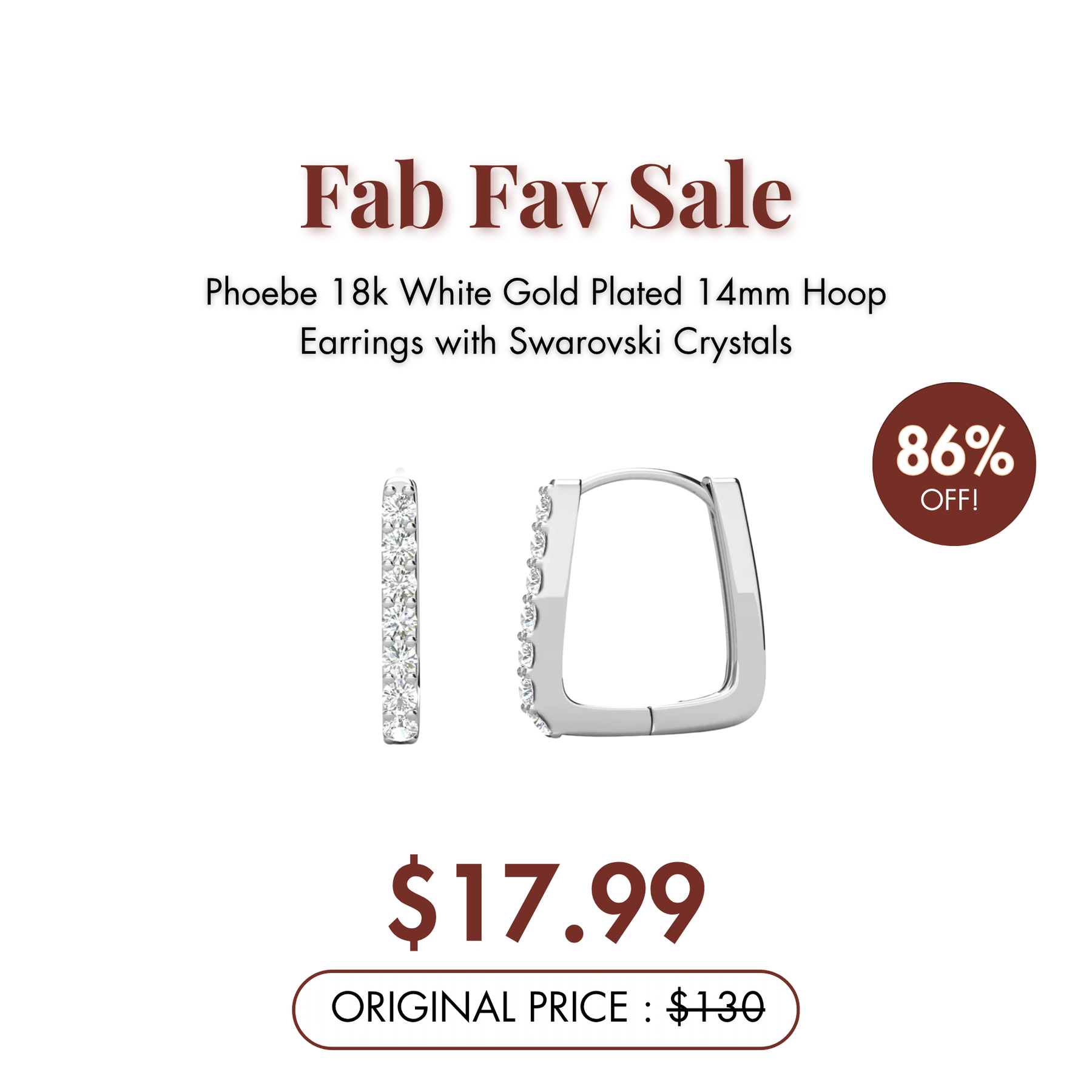 Crafted with 18k white gold plating, these hoop earrings radiate a lustrous allure that complements any attire. These stunning silver earrings dazzle with 14 round-cut Swarovski crystals, exuding brilliance and grace and creating a breathtaking ensemble of shimmer and sparkle.