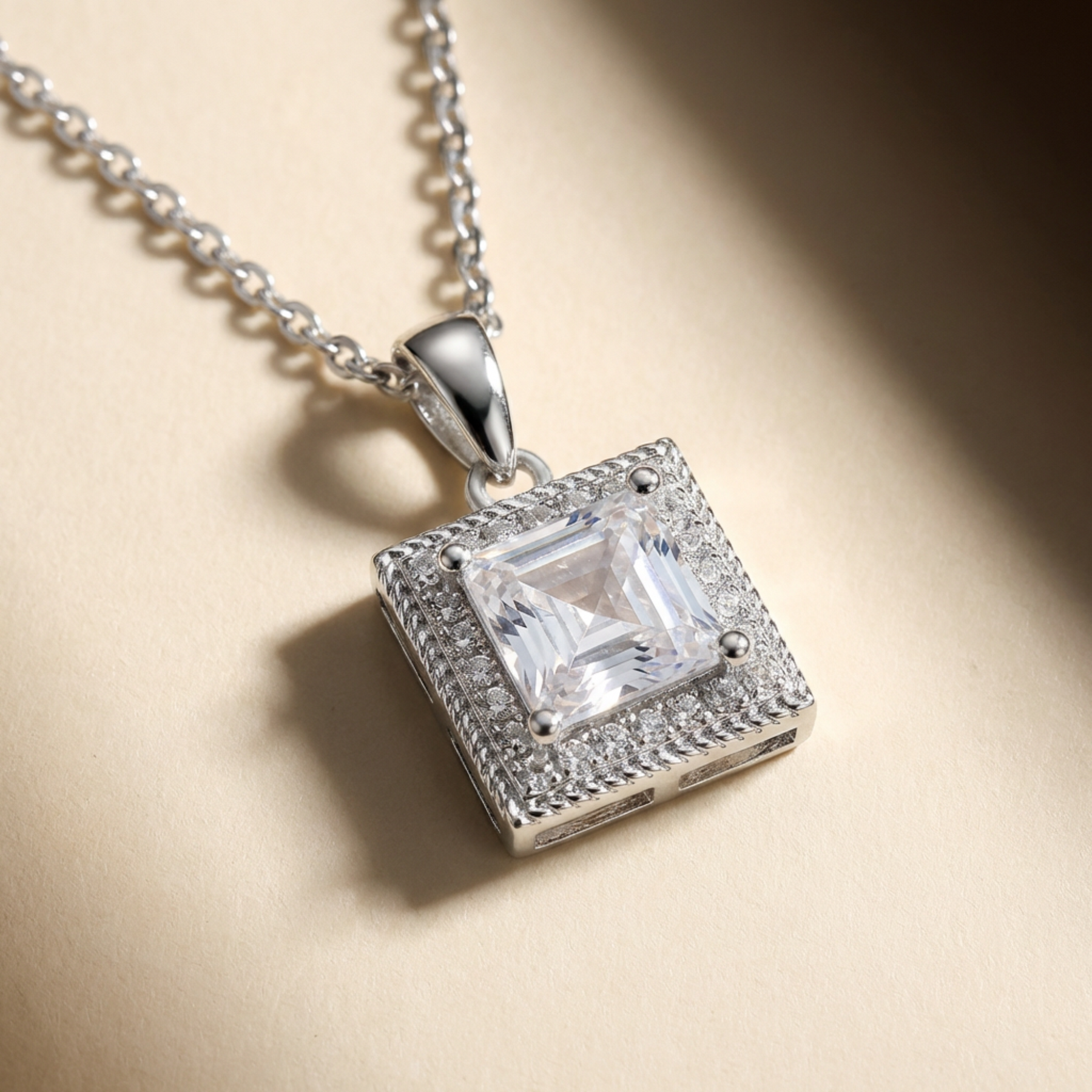 Indulge in timeless elegance with our Rebecca 18k White Gold Plated Silver Princess Cut Crystal Necklace—a dazzling silver necklace for women. Embrace the allure of princess-cut crystal in a halo design, exquisitely mounted in 18k white gold.