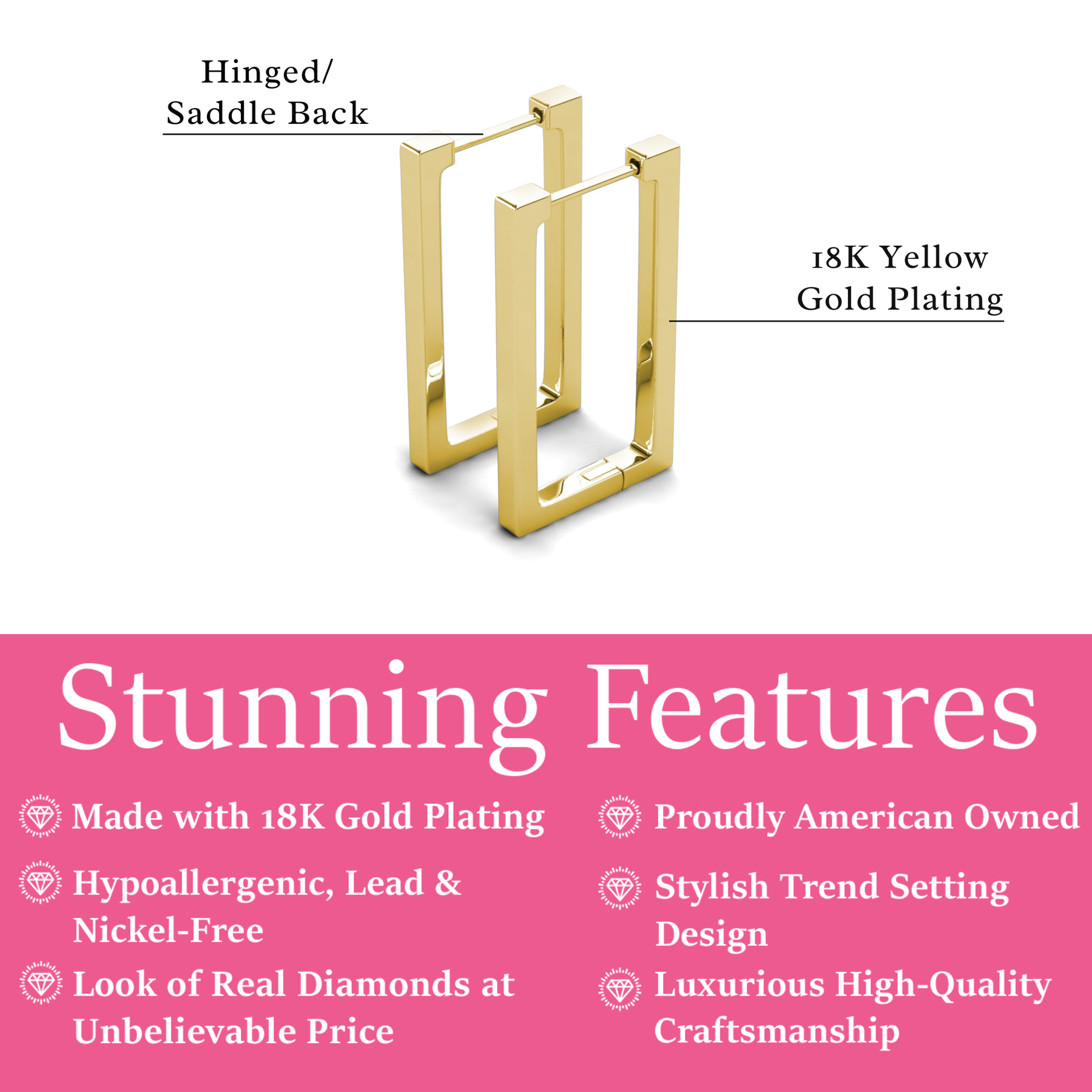 Embrace effortless sophistication with the Annalise 18k White Gold Plated Silver Square Hoop Earrings, designed to elevate any look with modern geometric elegance. Crafted from premium sterling silver and finished with radiant 18k white gold plating, these sleek square hoops offer a chic, contemporary twist on a classic style. Their lightweight construction ensures comfortable all-day wear, making them perfect for both everyday outfits and special occasions. Presented in a signature Cate & Chloe gift box, the Annalise earrings make a thoughtful, stylish gift—or a refined addition to your own jewelry collection.