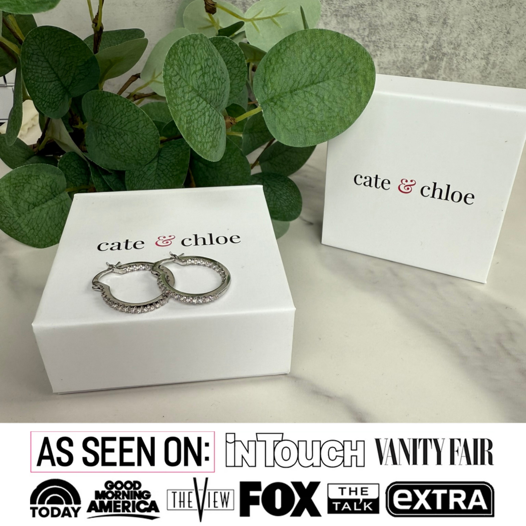 Bold, stylish, and effortlessly eye-catching, the Margot 18k White Gold Plated 24mm Hoop Earrings bring a touch of contemporary elegance to any look. Each hoop is adorned with sparkling simulated diamond crystals, adding brilliant shimmer that catches the light beautifully. Crafted from hypoallergenic brass and plated in luxurious 18k white gold, these earrings provide lasting comfort, durability, and everyday sophistication. Packaged in a Cate & Chloe gift box, they make a perfect gift or a dazzling addition to your own jewelry collection.