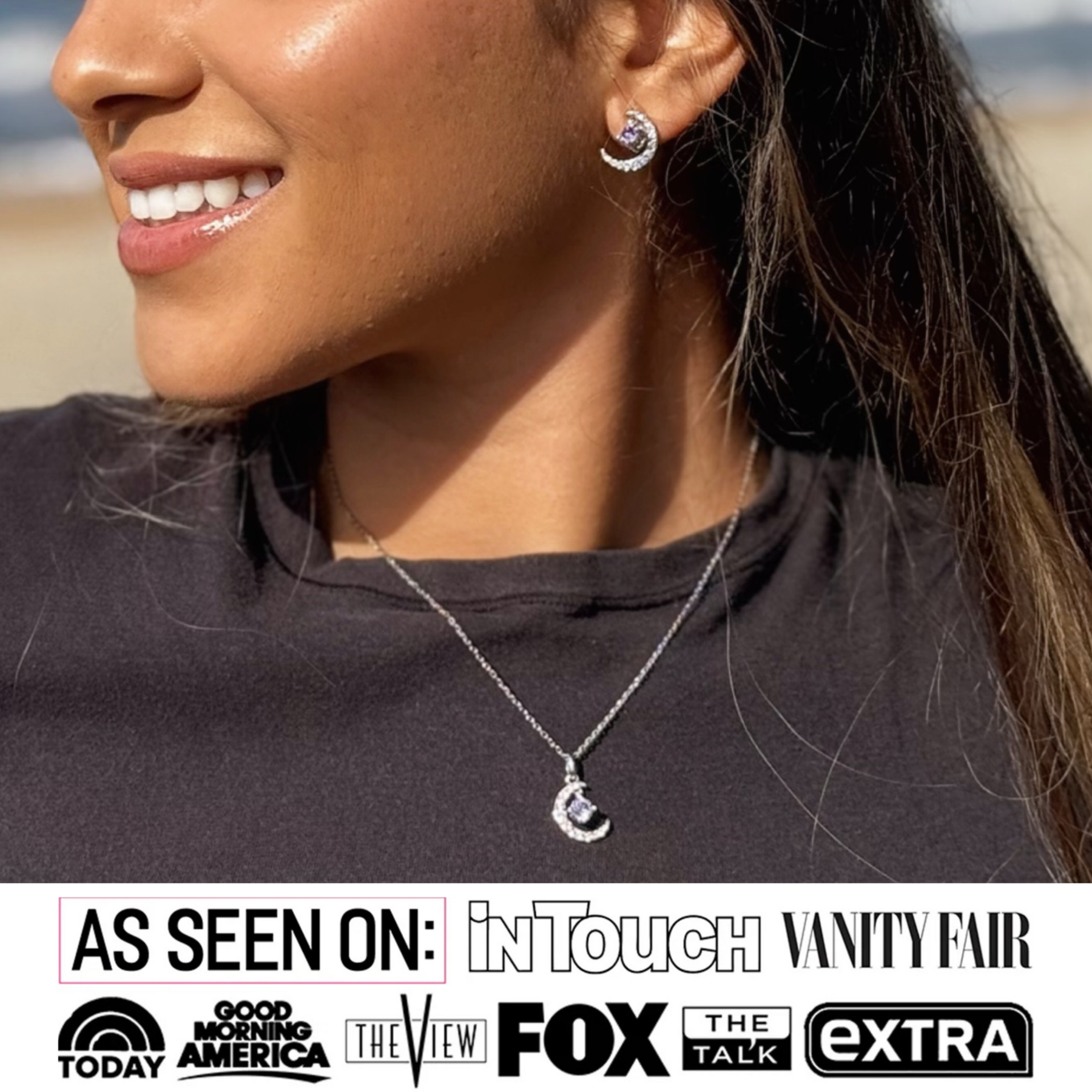 Luna Birthstone 18k White Gold Plated Silver Crescent Earrings and Necklace Set with Swarovski Crystals