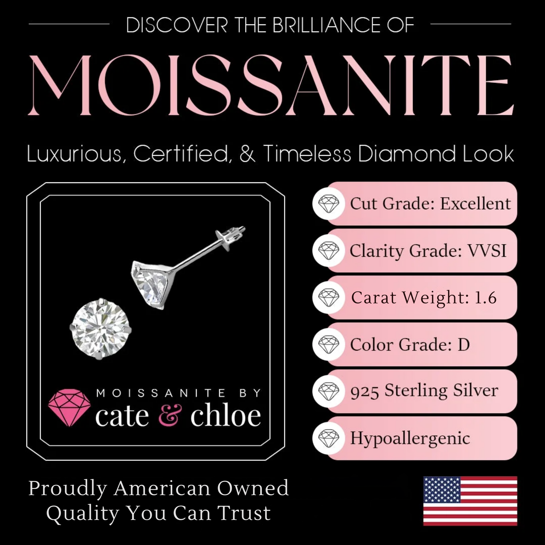 Moissanite by Cate & Chloe Vera Sterling Silver Stud Earrings