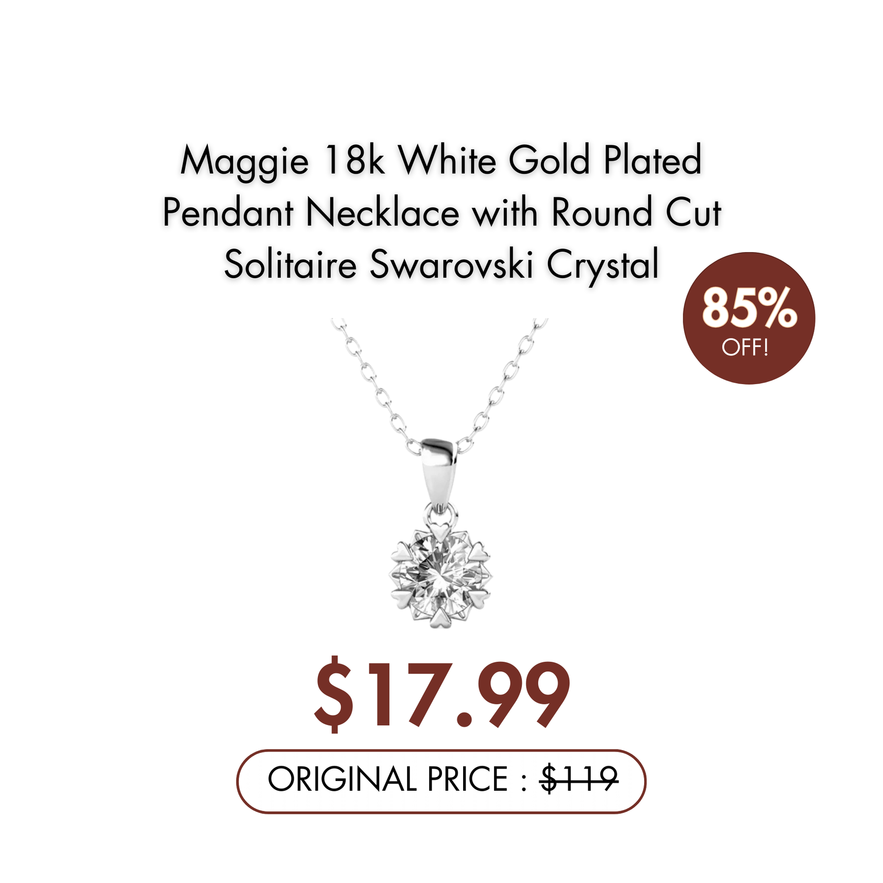 Maggie 18k White Gold Plated Pendant Necklace with Round Cut Solitaire Swarovski Crystal – Fab Fav Sale