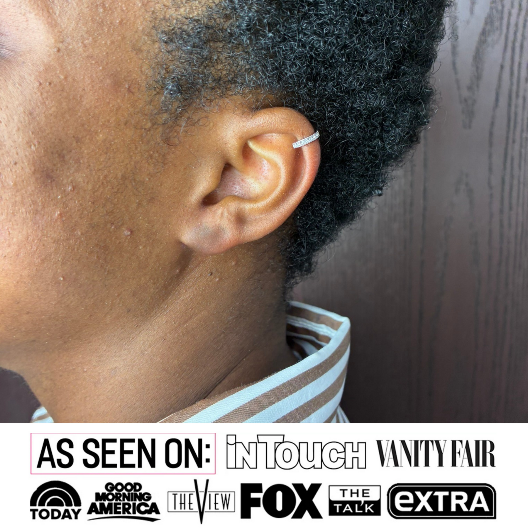 Whether you're accessorizing a casual outfit or elevating your formal attire, the Gloria ear cuff adds a delicate, sparkling statement without the need for piercings. A versatile piece perfect for the fashion-forward woman. Its curved silhouette hugs the ear comfortably, blending seamlessly with any look. Make a subtle yet unforgettable impression with every turn of your head.