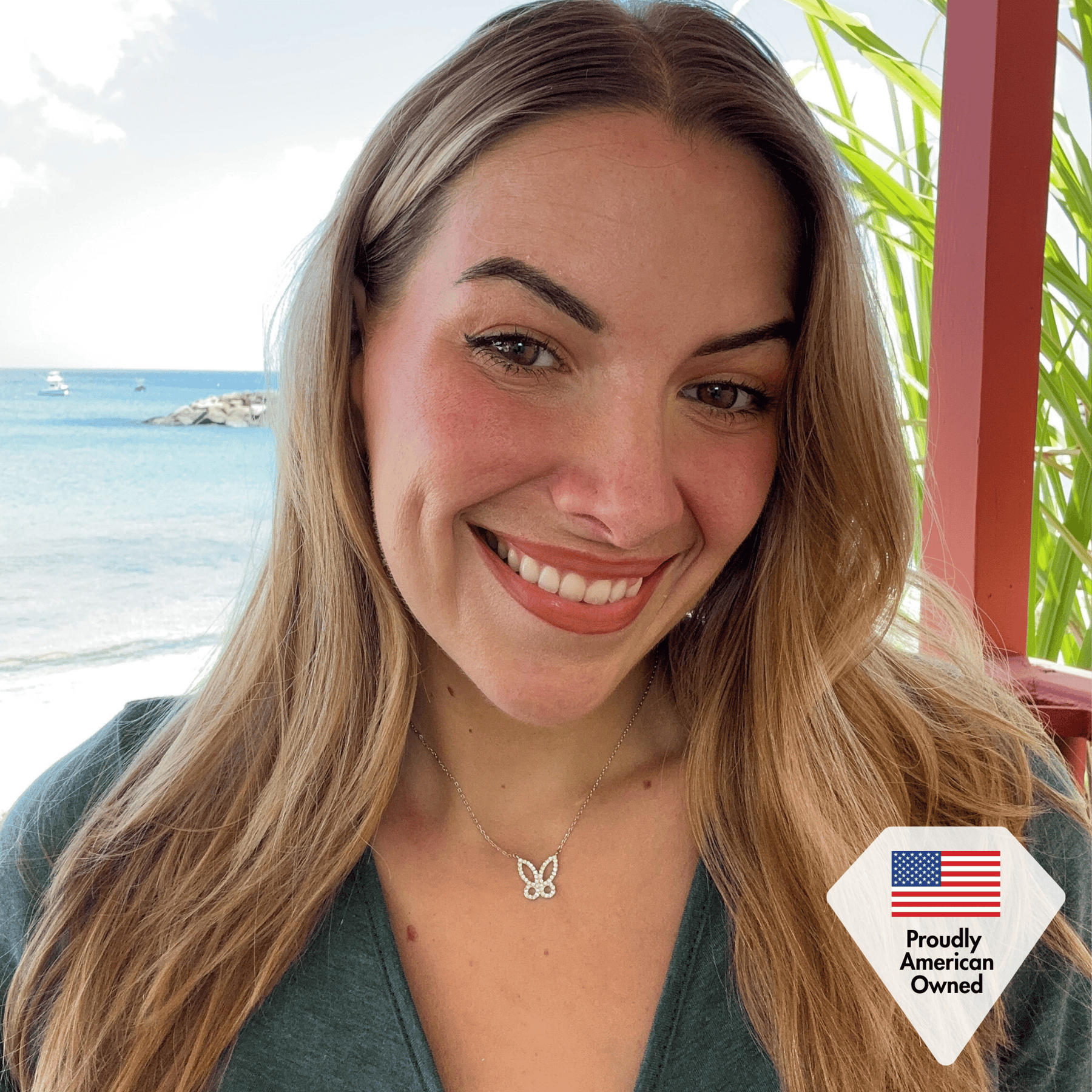 Delicate, whimsical, and sparkling with elegance, the Maxine 18k White Gold Plated Butterfly Necklace is designed to add a touch of graceful charm to any outfit. The butterfly pendant is adorned with brilliant Swarovski® crystals, capturing light beautifully and creating a radiant shimmer. Crafted from hypoallergenic brass and plated in luxurious 18k white gold, this necklace offers lasting comfort, durability, and everyday sophistication. Presented in a stylish Cate & Chloe gift box, it makes a thoughtful gift or a dazzling addition to your own jewelry collection.