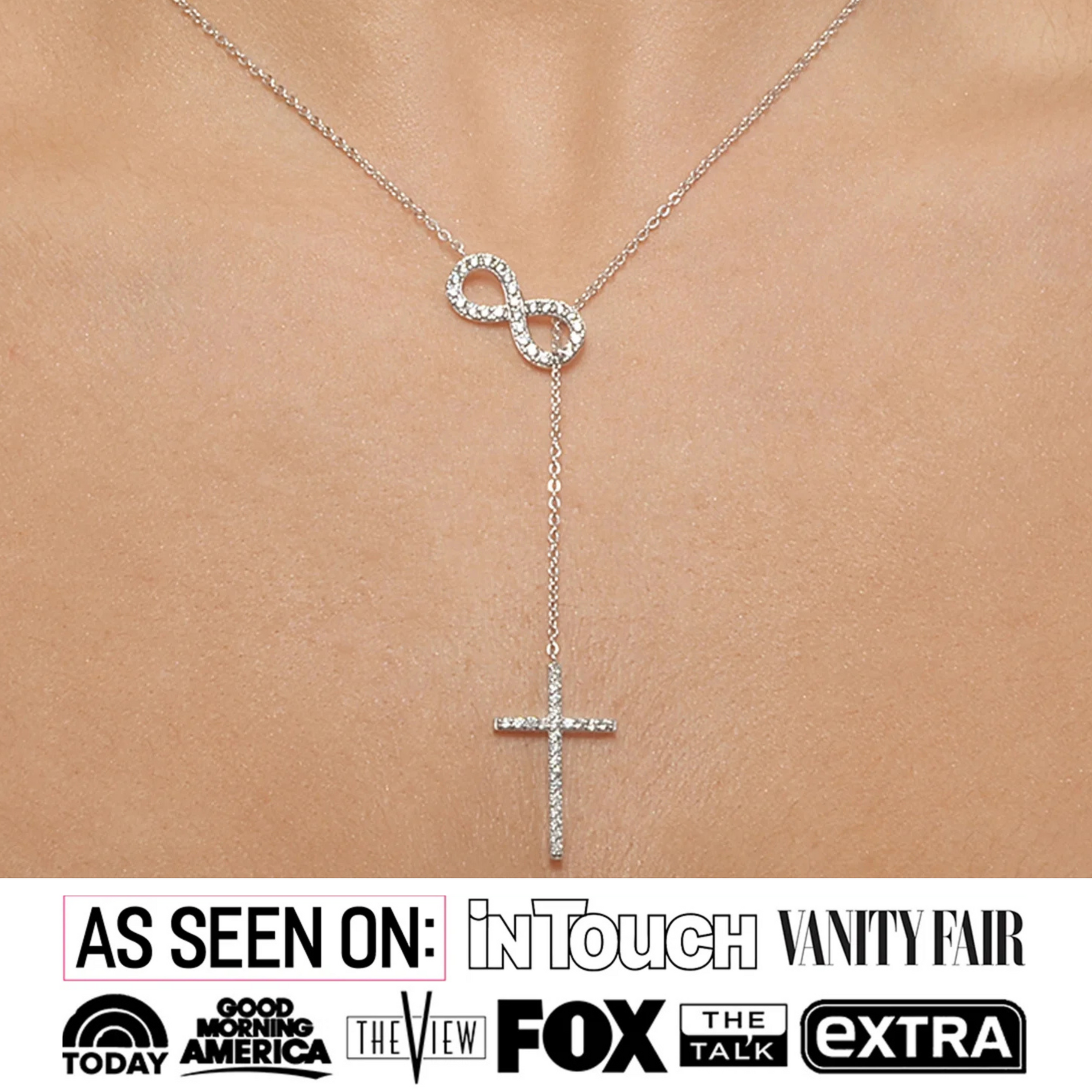 Elegant, meaningful, and designed to shine, the Mary Sterling Silver Infinity Cross Y-Necklace is a timeless addition to any jewelry collection. The delicate infinity cross pendant is adorned with sparkling simulated diamond crystals, offering a refined shimmer that catches the light beautifully. Crafted from high-quality sterling silver, this necklace provides lasting durability, comfort, and everyday elegance. Presented in a stylish Cate & Chloe gift box, it makes a thoughtful gift or a stunning piece to elevate your own jewelry collection.