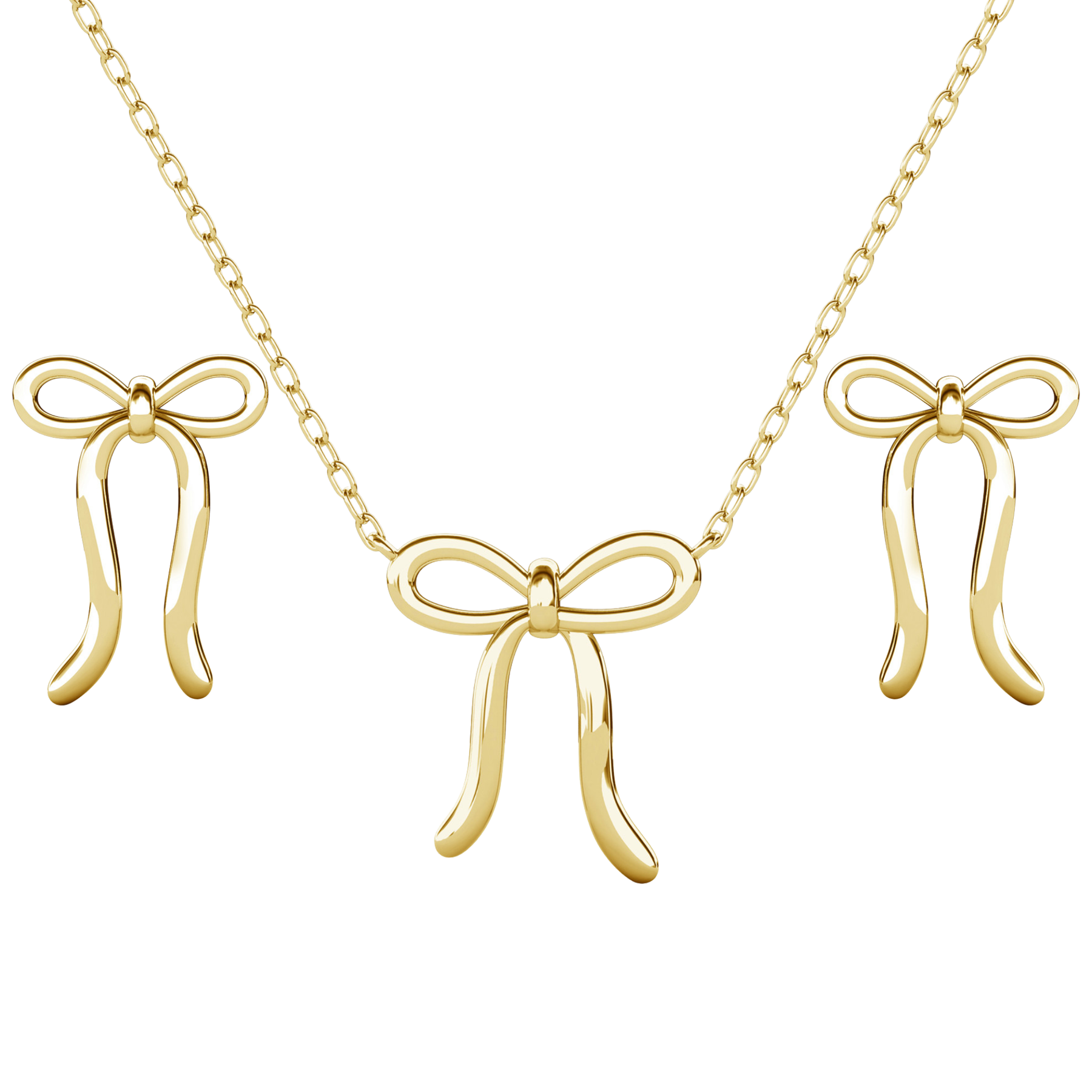 Lola 18k White Gold Plated Ribbon Earrings and Necklace Jewelry Set